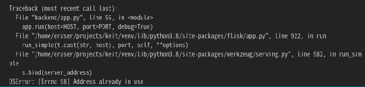 특히 두 번째 경우, 플래그를 추가하지 않으면 아래 그림에서와 같이 에러가 발생한다. 위와 같이 플래그를 추가해주지 않으면, 일일이 해당 프로세스를 죽인 후 서버를 구동해야(kill [pid]) 한다.